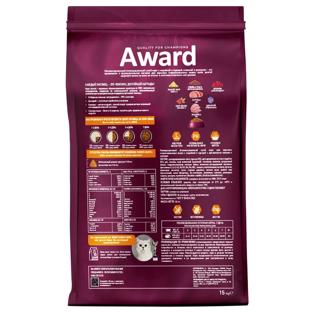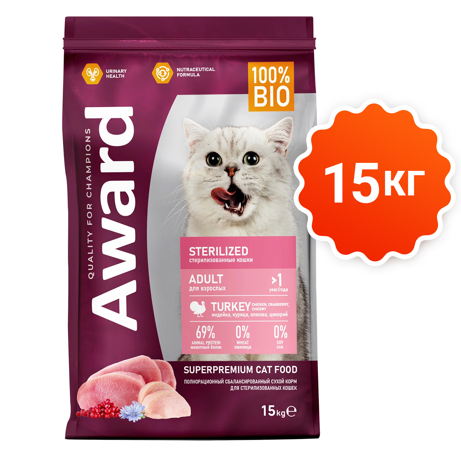 Award Sterilized сухой корм для Стерилизованных кошек (Индейка, Курица, Клюква, Цикорий)