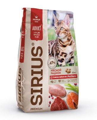 Отличие корма премиум класса SIRIUS "Мясной рацион" для взрослых кошек от аналогов: